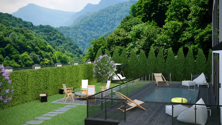 Установим обогреваемый бассейн и благоустроим территорию- дополнительные услуги.