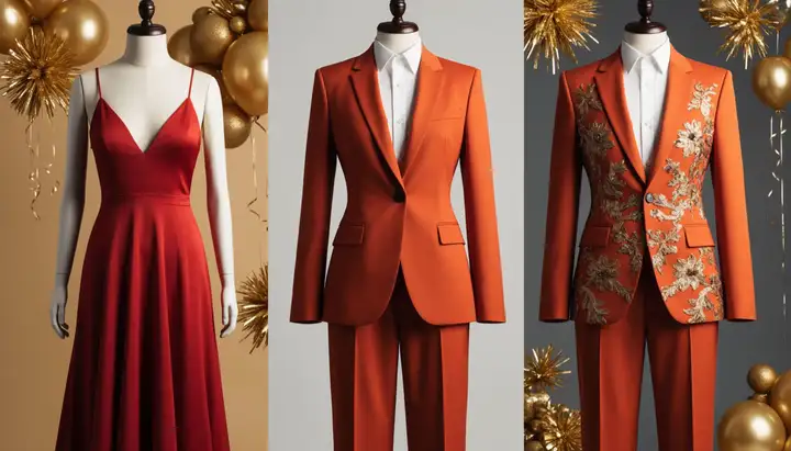 Платья — главный элемент новогоднего стиля. Платье-футляр красного цвета отлично подойдёт для создания классического праздничного образа. Более свободные модели, такие как платья с драпировкой, подчеркнут легкость и динамику. Альтернатива — брючные костюмы с комбинированием с яркими топами и блестящими тканями, такие как сатин или бархат, могут сделать образ более современным и удобным.